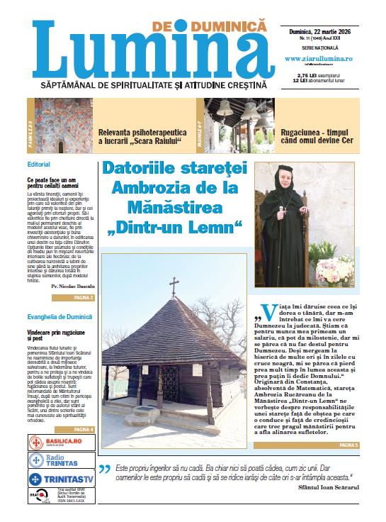 Preafericitul Părinte Daniel, Patriarhul Bisericii Ortodoxe Române, a rostit în Duminica a 3-a din Postul Mare, a Sfintei Cruci, un cuvânt de învățătură la finalul Sfintei Liturghii săvârșite în Paraclisul istoric „Sfântul Mare Mucenic Gheorghe” al Reședinței Patriarhale. Preafericirea Sa a subliniat faptul că pasajul evanghelic rânduit (Marcu 8, 34-38; 9, 1) ne arată că „urmând lui Hristos, prin Cruce primim bucuria Învierii”.
